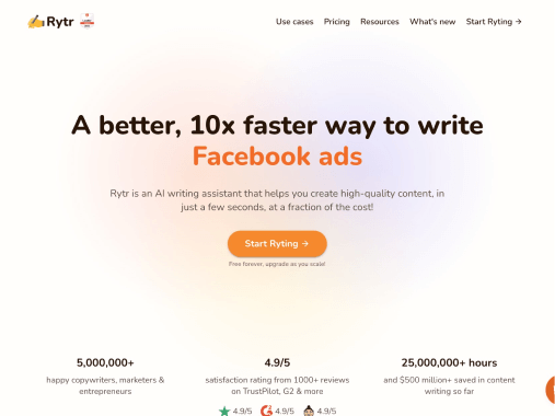Rytr是一个于2021年4月发布的人工智能驱动的AI写作工具,该人工智能写作助手可以帮助用户自动撰写和创建电子邮件、博文文章、广告文案和社交媒体帖子等内容。只需几秒钟Rytr便可以为用户创造原创的、有吸引力的文案,成本只有人工的几分之一。