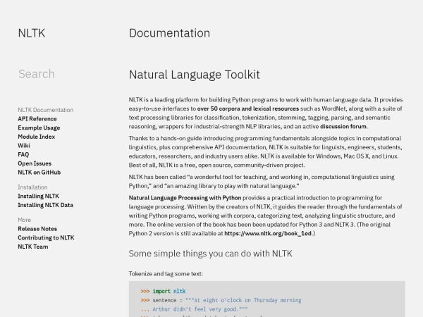 NLTK(Natural Language Toolkit)自然语言工具包——是一套开源Python模块、数据集和教程,支持自然语言处理的研究和开发。NLTK需要Python版本3.7、3.8、3.9、3.10或3.11。