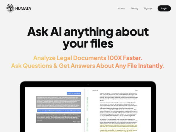 Humata是由GPT驱动的一个AI文档文件分析、阅读、问答工具,该工具可以帮助用户: 总结长篇问答,让你学习更快,把复杂的技术论文变成简单解释的摘要。 即时问答,回答与你的文档相关的难题,立即获得易于理解的答案。 提高写论文速度,可根据您的文件自动创建新的paper,快速为报告、论文和各种任务生成详细的见解。